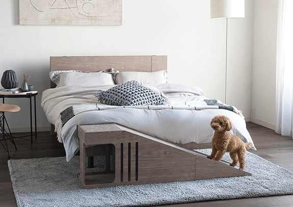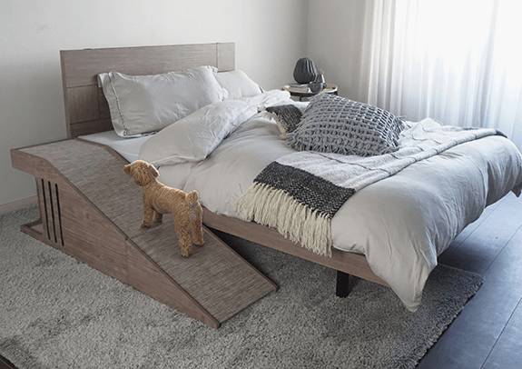 ワンちゃんがベッドに上り下りするのをサポートするスロープ。