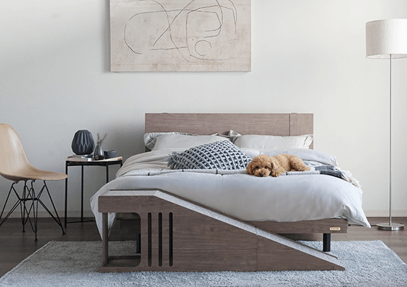 階段が苦手な小型犬や、脚の短い犬種で段差の昇り降りが負担になりやすい子でも、安心してベッドにアクセスできるよう設計されています。